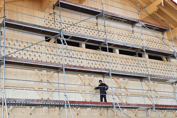 BGJ-Azubi Maxi Kirr (16) aus Pittenhart (Landkreis Traunstein) hat den ersten Teil seines Pflichtpraktikums hinter sich. Sein Fazit nach den zwei Wochen: „Dass es so schön wird, hätte ich nicht gedacht!“ Mit seinem Team hat er ein aufwändiges Bundwerk an einem Stall angebracht: „Das war eine große Zimmerer-Ehre.“
