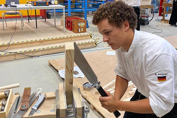 Zimmerer-Geselle Philipp Kaiser (21) tritt bei der Berufsweltmeisterschaft für Deutschland an. Die WorldSkills finden von 12. bis 17. Oktober 2022 in Schanghai statt. Bis dahin scheint noch viel Zeit zu sein. Wer allerdings gegen die sehr gut vorbereitete internationale Konkurrenz eine Chance haben möchte, muss jetzt schon anfangen zu trainieren.